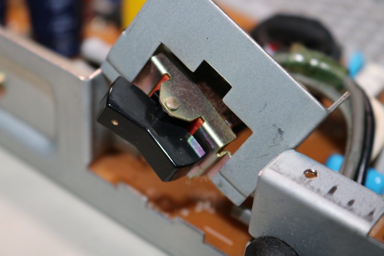 ▼電源スイッチ部分は写真の金具で上から押さえて取り付けられています。