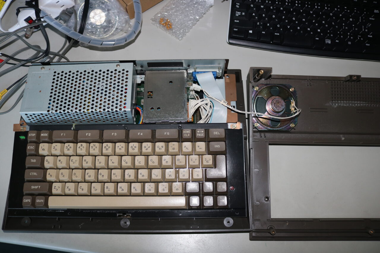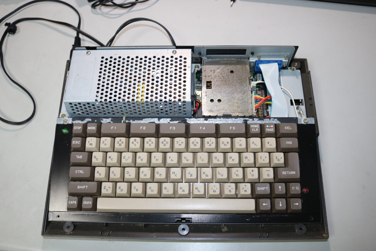 オークションなどでたまに出ている電源ケーブルが切断されているPC-6001mk2ですが、電源ケーブルさえつながれば動くことがあります。
