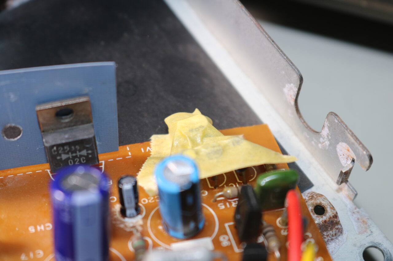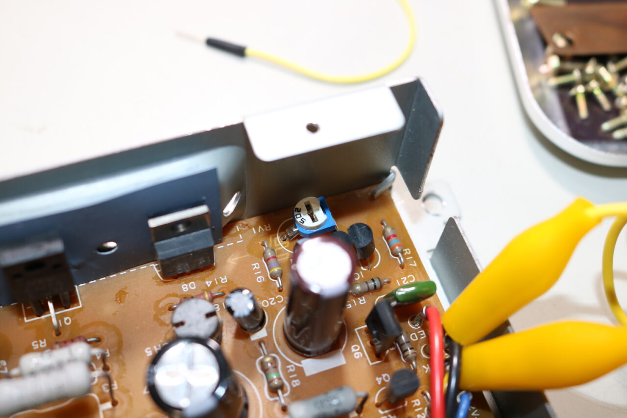 ▼電源ユニット基板の右上角にあった3KΩの半固定抵抗器を取り外します。