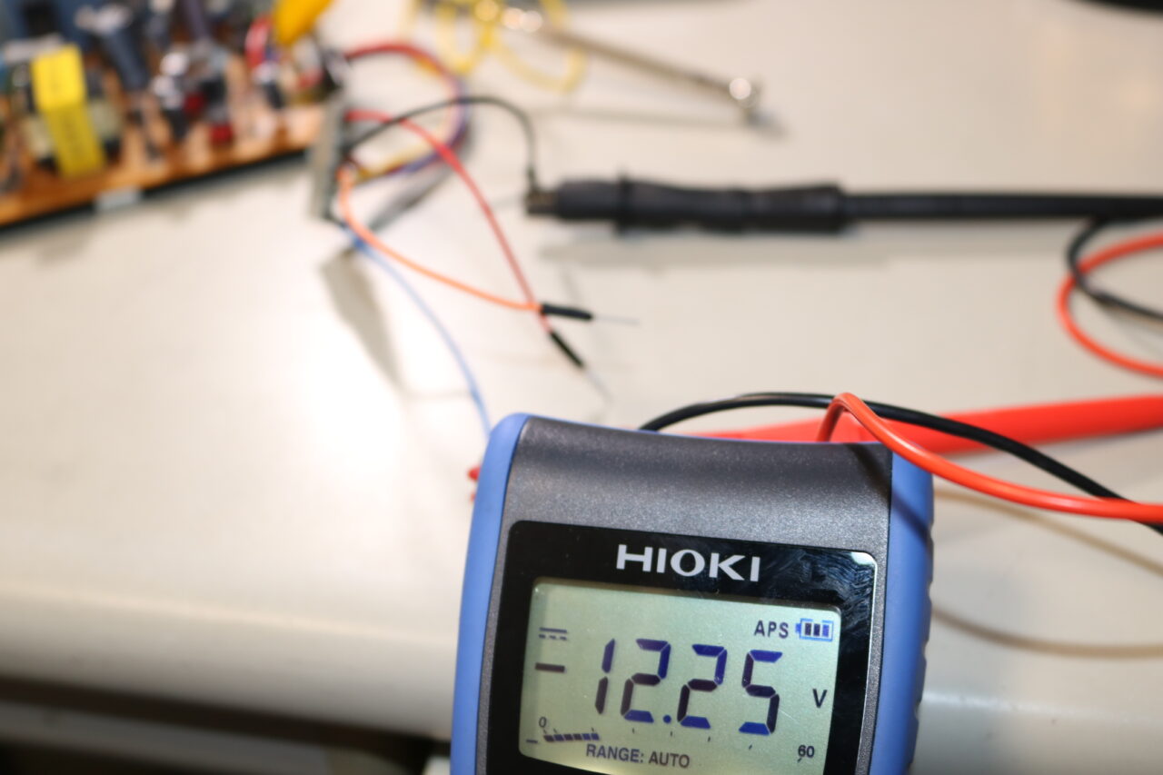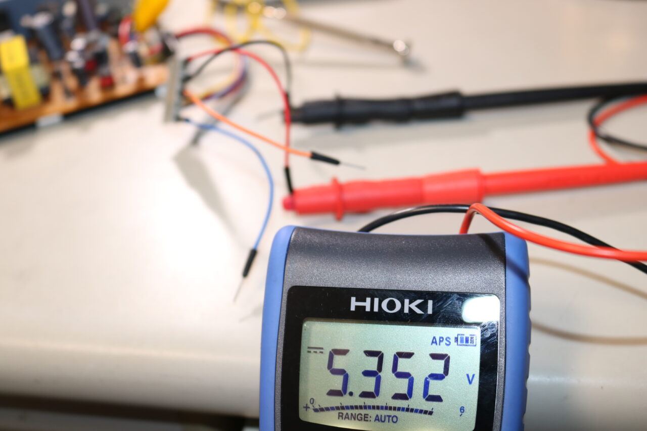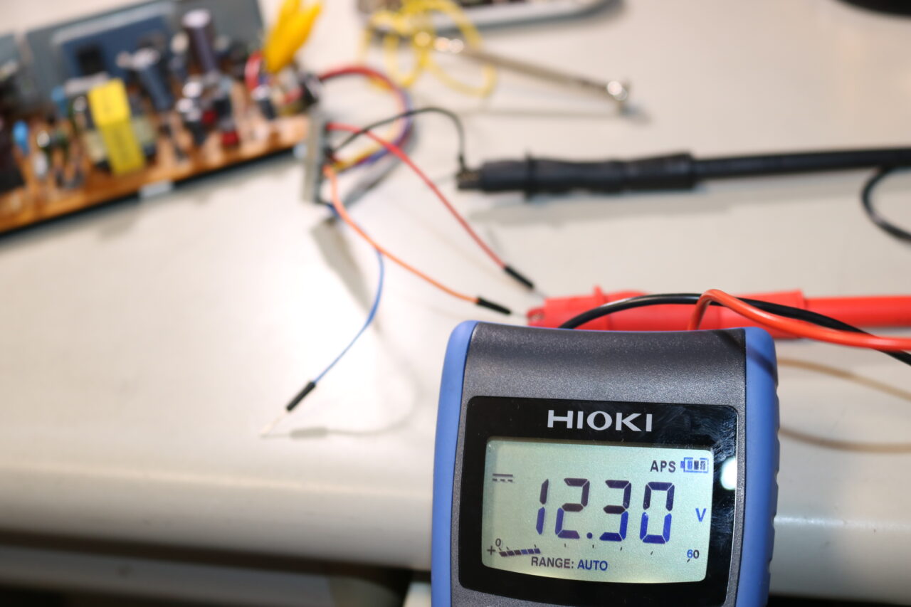 上記の状態だったものが、前述の半固定抵抗の調整や交換を行うと、定格電圧に近い電圧を取り出すことができるようになります。