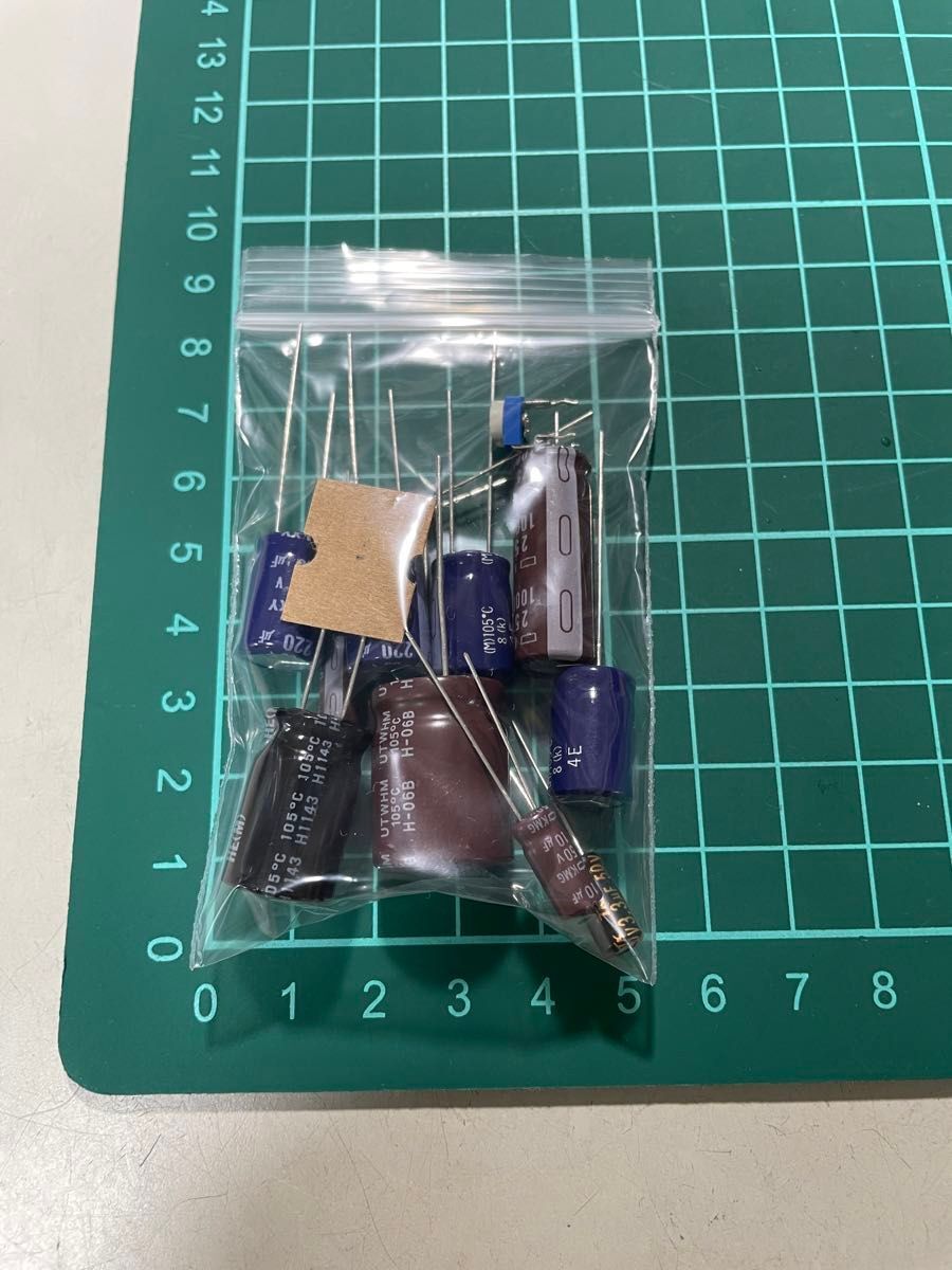 今後のために、すべて日本メーカー製のコンデンサを揃えました。電源部ですので、耐熱105℃は当たり前ですが、耐圧は部品の入手の都合で容量が同じであればオリジナルより高いものでもOKです。